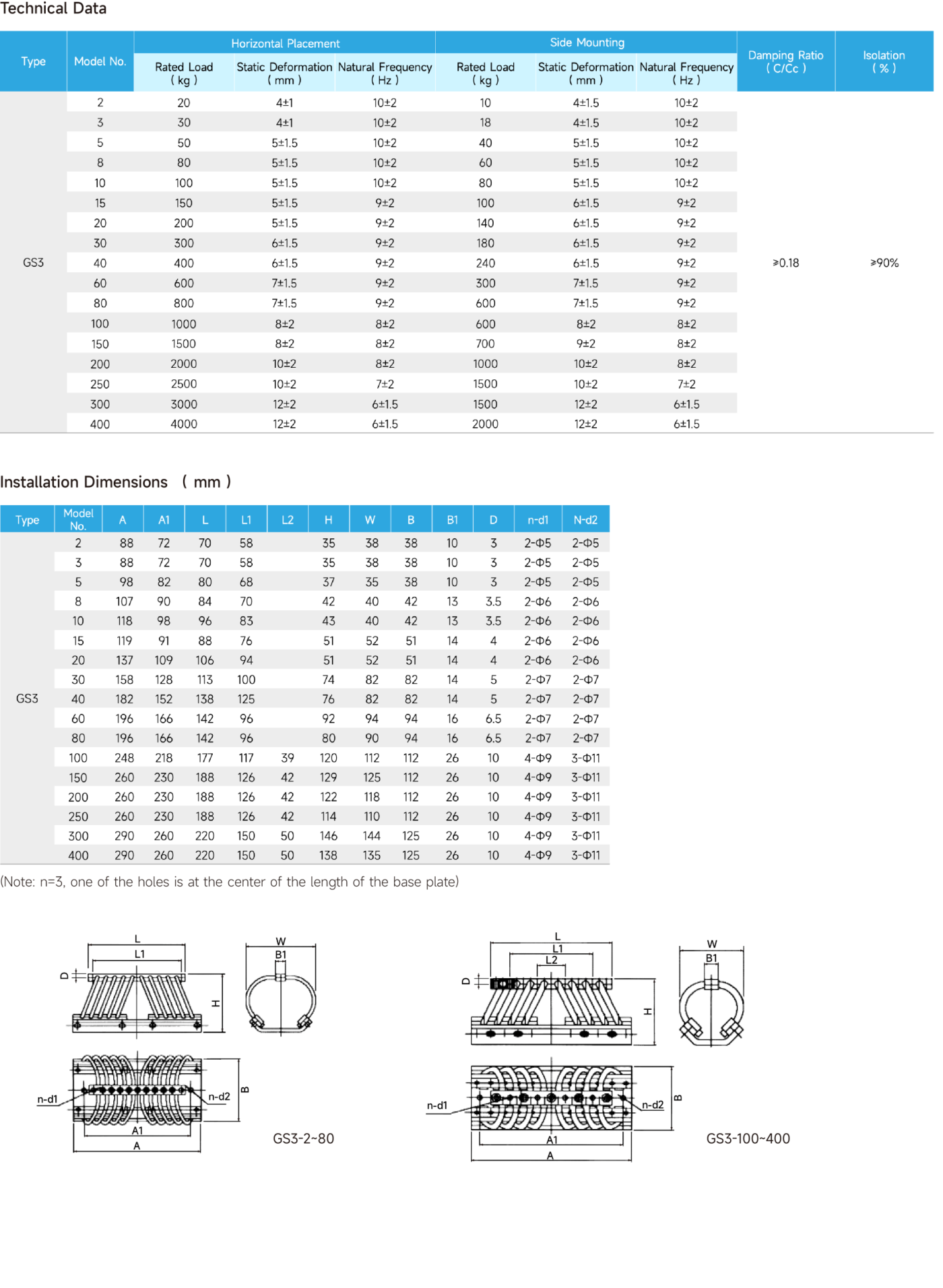 The natural frequency of this series of isolators is 6~10Hz, the damping ratio is greater than 0.18, and the shock isolation is greater than 90%;