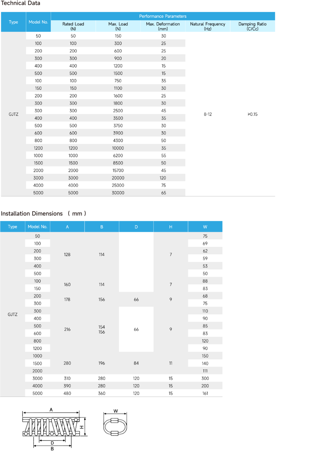GJTZ series heavy-duty wire rope isolators are the most widely used and mature vibration isolation and impact resistance products in various industries. They have large damping, low magnification, low solid frequency, high impact resistance, high temperature resistance, strong corrosion resistance, and are easy to use and install.