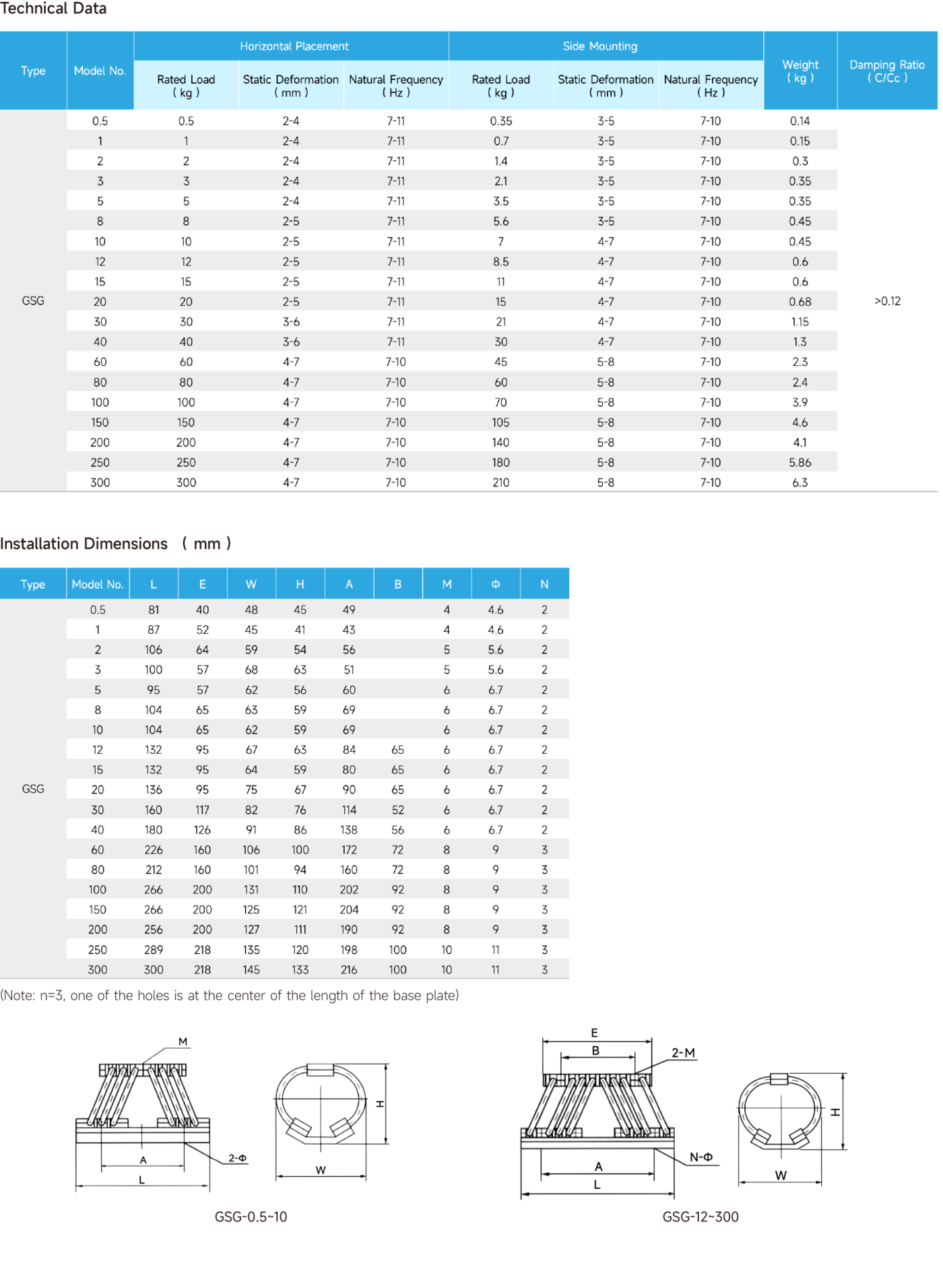 GSG series stainless steel wire rope isolators are more stable and have better vibration isolation effect than GS series products. They have excellent performances such as large damping, low magnification, low solid frequency, large impact resistance, high temperature resistance, strong corrosion resistance, and easy use and installation. They are widely used in shipbuilding, aviation, vehicle-mounted equipment and instruments, electromechanical and other industries, with mature performance and quality, and excellent vibration reduction and noise reduction effects after use.
